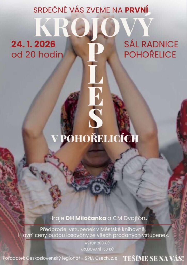 24. 1. 2026 od 20:00 vás SPIA s radostí zve na 1. Krojový ples v Pohořelicích na Sále Radnice (Brněnská 2, Pohořelice).