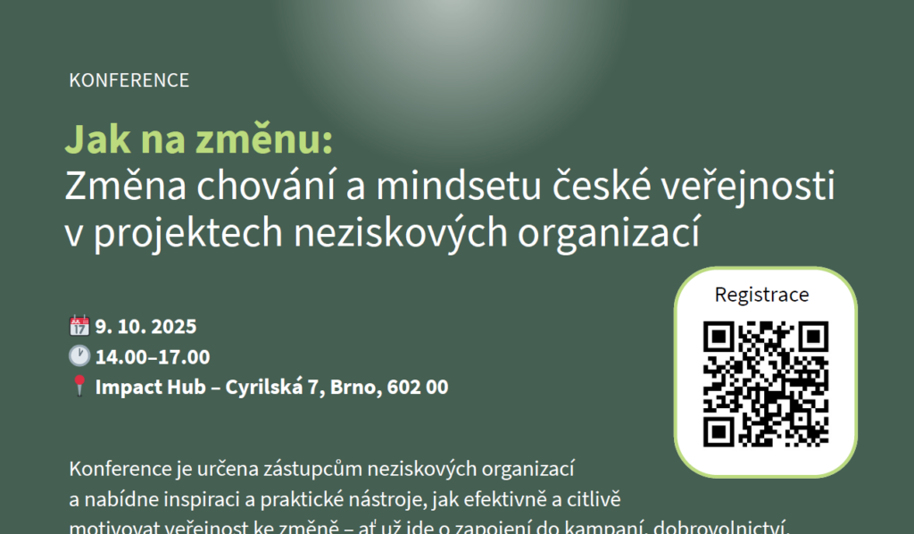Pozvánka na konferenci Jak na změnu: Změna chování a mindsetu české veřejnosti v projektech neziskových organizací 9. října v Brně